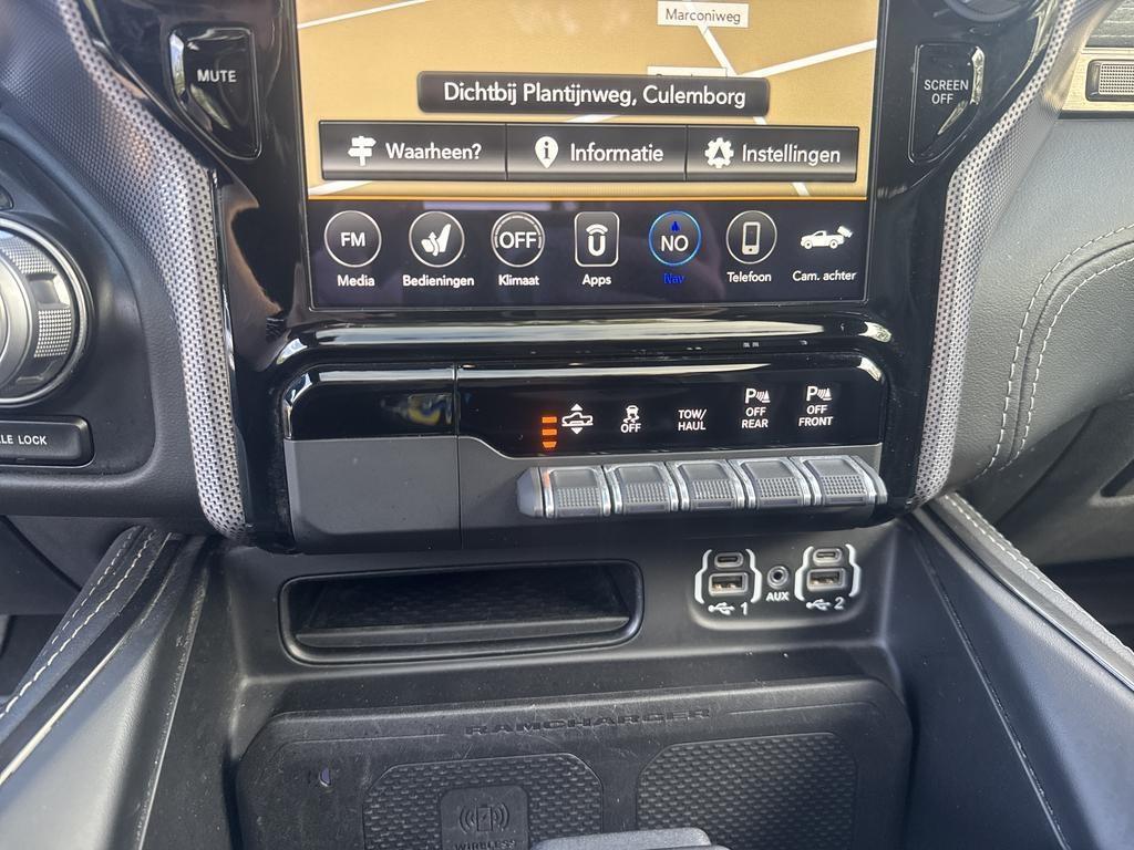 Het is een mooie auto, deze Dodge Ram 1500 uit 2022, hij heeft 61428 kilometer gelopen. De aandrijving wordt verzorgd door een achtcilinder benzinemotor en een automatische transmissie. De aanwezige luchtvering zorgt voor meer veiligheid en rijcomfort onder alle omstandigheden. Om het af te maken is deze auto voorzien van een lederen interieur. Behaaglijk onderweg zijn? Als bestuurder geniet u van de verwarmbare voorstoelen. Net als uw bijrijder! Wat een licht geeft dat glazen elektrisch bedienbare panoramadak. Ook achterin heerst een luxe sfeer, vanwege de verwarmde achterbank. Tot de voorzieningen van deze auto behoren 22 inch lichtmetalen velgen, LED koplampen, geluidsisolerende ramen, zwarte hemelbekleding, in delen neerklapbare achterbank en treeplanken.