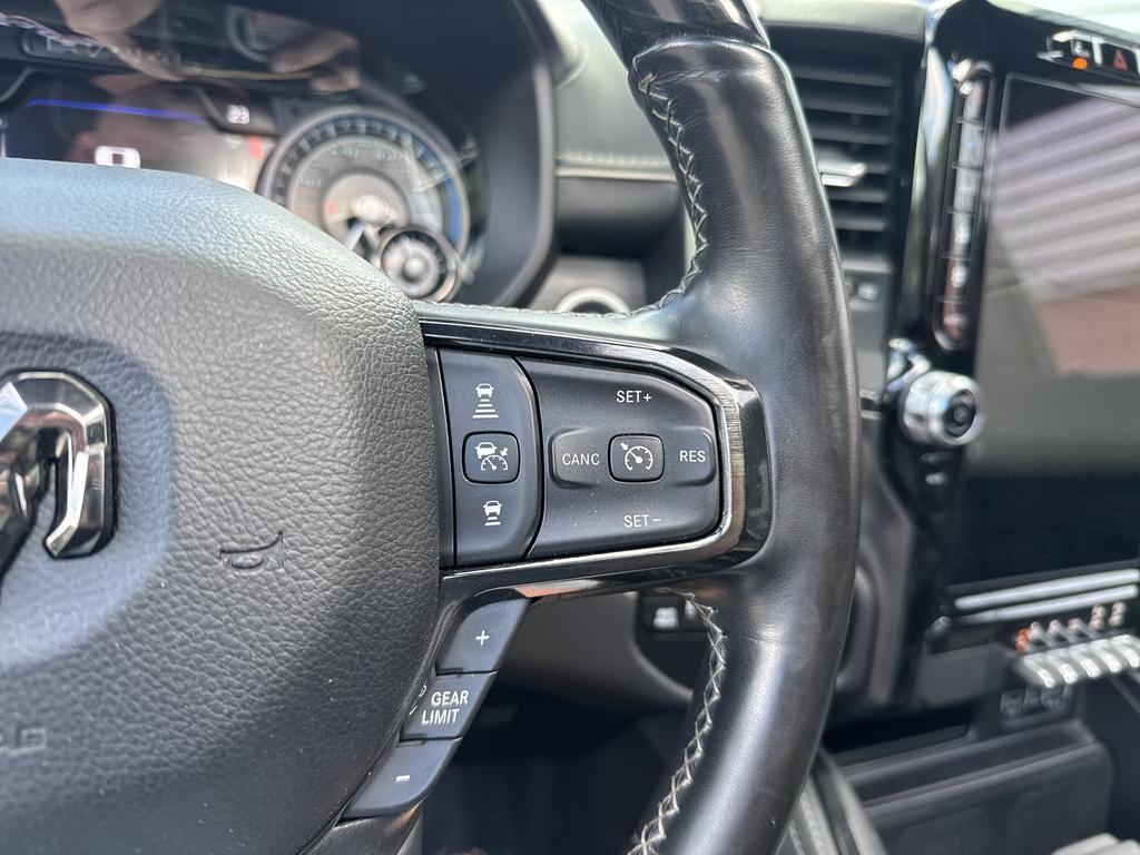 Ontspannen en zorgeloos autorijden, dat doet u met deze Dodge Ram 1500. Deze auto komt uit het bouwjaar 2023. De krachtige benzinemotor van deze auto is gekoppeld aan een automatische transmissie. Ook op de minder vlakke wegen zoeft u lekker door dankzij de luchtvering. Lederen bekleding is in deze rijk uitgeruste auto ook aanwezig. De verwarmbare voorstoelen benadrukken nog maar eens dat we hier te maken hebben met een regelrechte verwenauto voor bestuurder en bijrijder. Het interieur lijkt groter en ruimtelijker dankzij het elektrisch bedienbare glazen panoramadak. Laat ze achterin ook maar genieten: deze Dodge Ram 1500 is uitgevoerd met een verwarmde achterbank. Natuurlijk behoren 22 inch lichtmetalen velgen, LED koplampen, geluidsisolerende ramen, zwarte hemelbekleding, in delen neerklapbare achterbank en treeplanken ook tot de uitrusting van deze complete auto.
