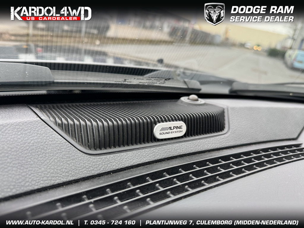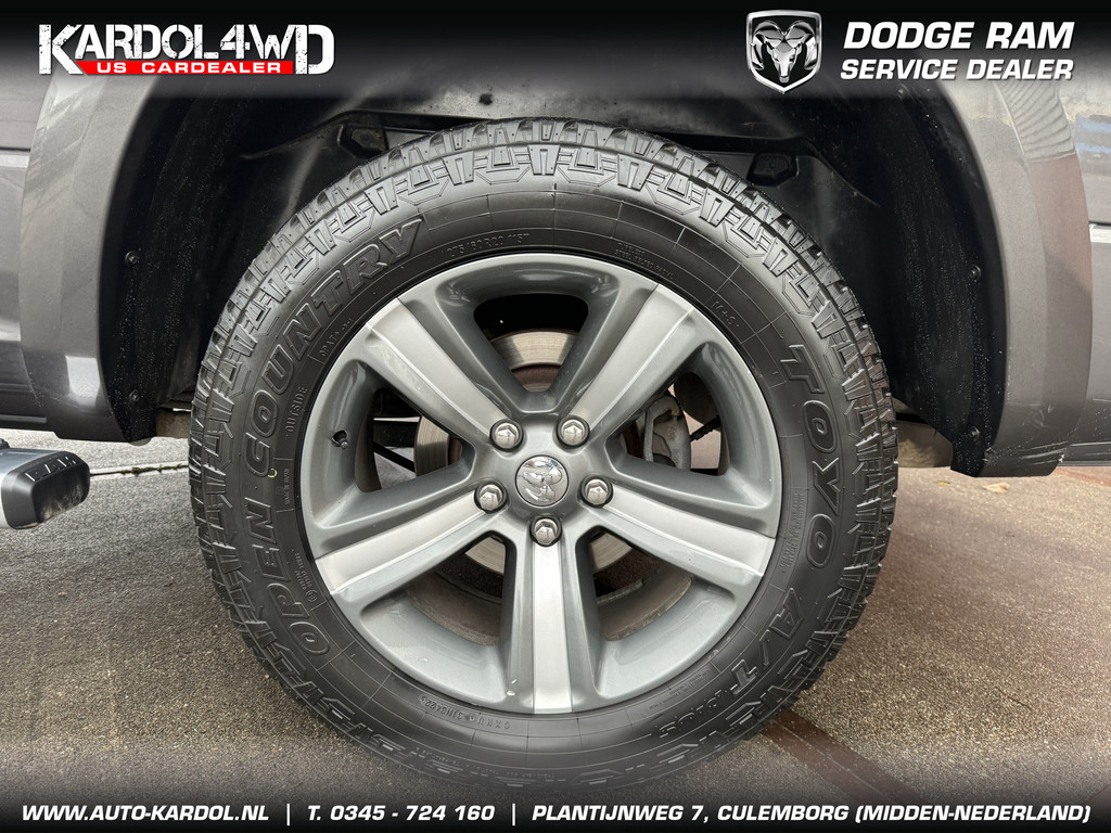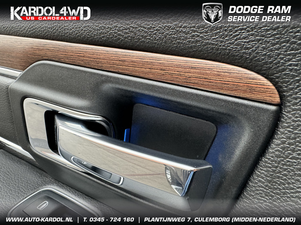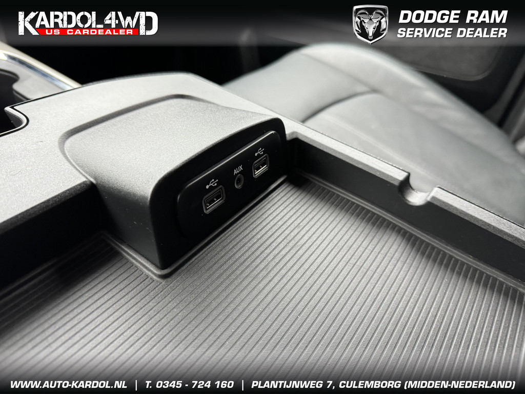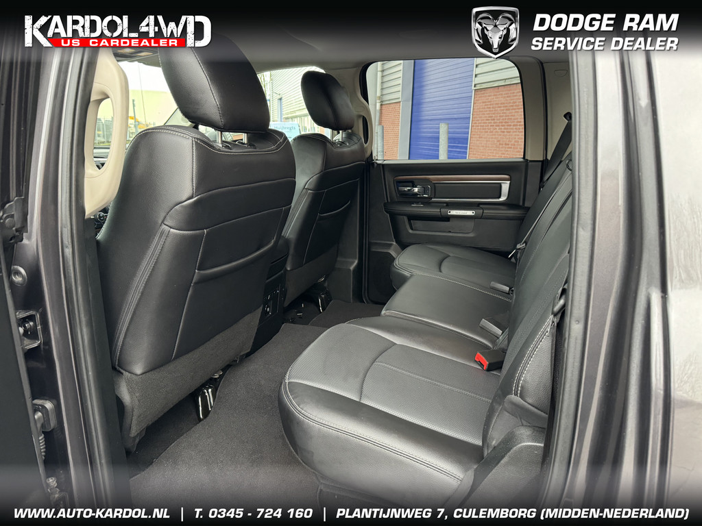 Pittig, wendbaarder dan je denkt. Perfect in conditie, een top-occasion! Een achtcilinder benzinemotor en een automatische transmissie zorgen samen voor een snelle en comfortabele rijervaring. Ongeacht het aantal inzittenden blijft de hoogte van deze Dodge Ram 1500 altijd constant, dankzij de luchtvering. De auto is voorzien van een mooie en comfortabele lederen bekleding. De verwarmbare voorstoelen zijn een heerlijke extra optie, waarmee u uzelf en uw bijrijder een groot plezier doet. Opwarmen in koude dagen? Pak het verwarmd stuurwiel met beide handen aan! Ook 20 inch lichtmetalen velgen, trailer assistent, zwarte hemelbekleding, neerklapbare achterbank, elektrisch verstelde en verwarmde buitenspiegels en elektrisch bediende ramen zijn aan boord.