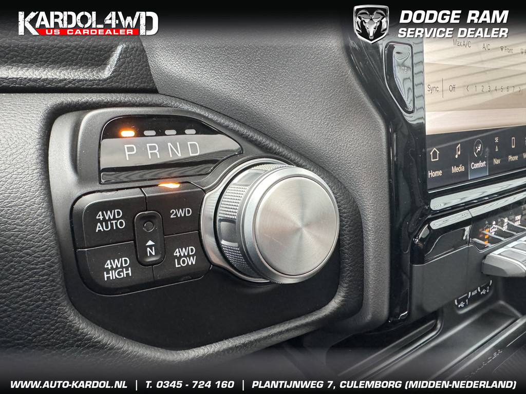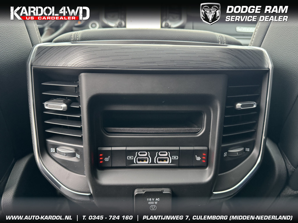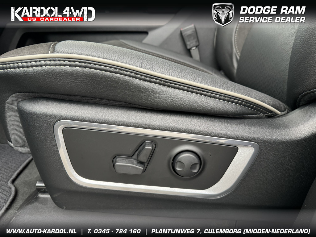 Alle technologie in de Dodge Ram 1500 is er op gericht om uw rit veilig en gemakkelijk te laten verlopen. Op de teller van deze goed onderhouden auto staat slechts 10 kilometer. De auto is van bouwjaar 2024. De krachtige benzinemotor staat garant voor uitstekende prestaties. Als u nog nooit een elektrisch bediend glazen panorama dak hebt gehad, is dit echt een ontdekking. Licht, lucht en ruimtelijk gevoel maken elke rit tot een feest. Helemaal in dit fraaie lederen interieur. Dankzij de elektrische stoelbediening is het gemakkelijk om de optimale zitpositie te vinden. Dankzij de stoelverwarming, verwarmbare achterbank en het verwarmbare stuur in deze auto, krijgt het begrip rijcomfort een nieuwe betekenis. Deze Dodge Ram 1500 is voorzien van luchtvering, en dat is te merken aan de rimpelloze wegligging. Ook 22 inch lichtmetalen velgen, LED koplampen, geluidsisolerende ramen, zwarte hemelbekleding, elektrisch inklapbare buitenspiegels en in delen neerklapbare achterbank horen tot de voorzieningen op deze auto.