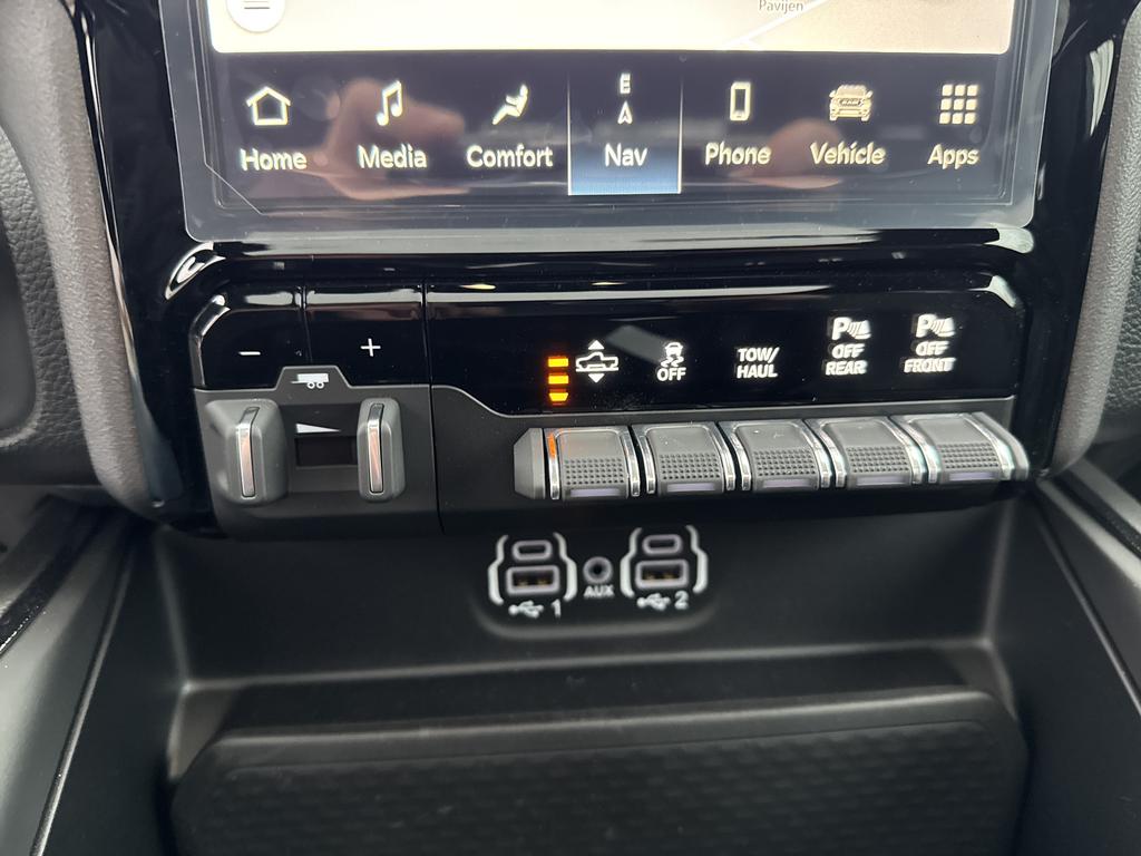 Alle technologie in de Dodge Ram 1500 is er op gericht om uw rit veilig en gemakkelijk te laten verlopen. Een krachtige motor geeft deze auto zijn sportieve prestaties. Ongeacht het aantal inzittenden blijft de hoogte van deze Dodge Ram 1500 altijd constant, dankzij de luchtvering. Voorzien van een lederen interieur: stijl en kwaliteit voor u en uw passagiers! In dit voertuig hoeft u nooit meer kou te lijden dankzij functies als stoelverwarming en verwarmbare achterbank, evenals een verwarmbaar stuur. Voel die ruimte eens! Lekker veel licht door het elektrisch bediende glazen panoramadak. In deze auto profiteert u onder andere ook van: 22 inch lichtmetalen velgen, LED koplampen, geluidsisolerende ramen, zwarte hemelbekleding, in delen neerklapbare achterbank en LED-achterlichten.